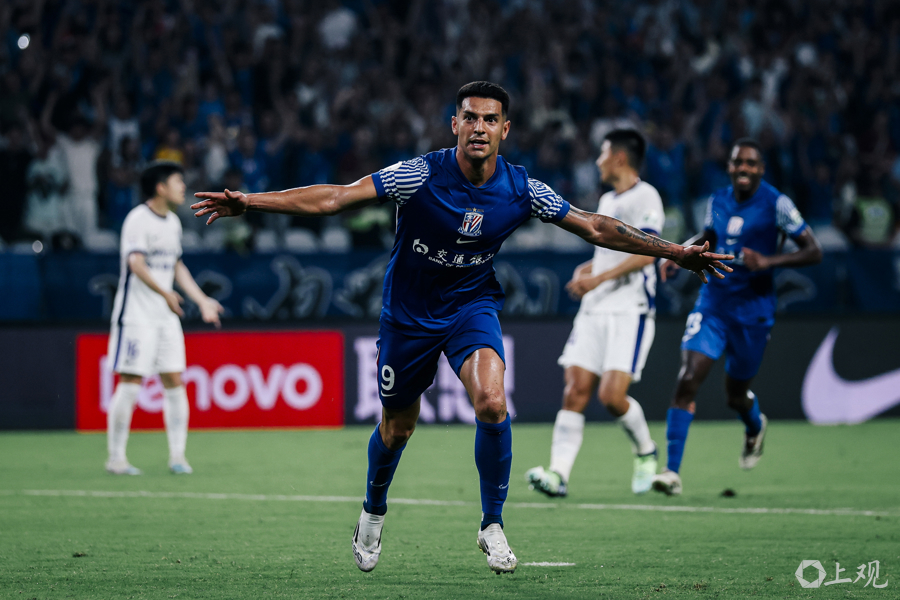 路易斯庆祝进球 新民晚报 李铭珅 摄