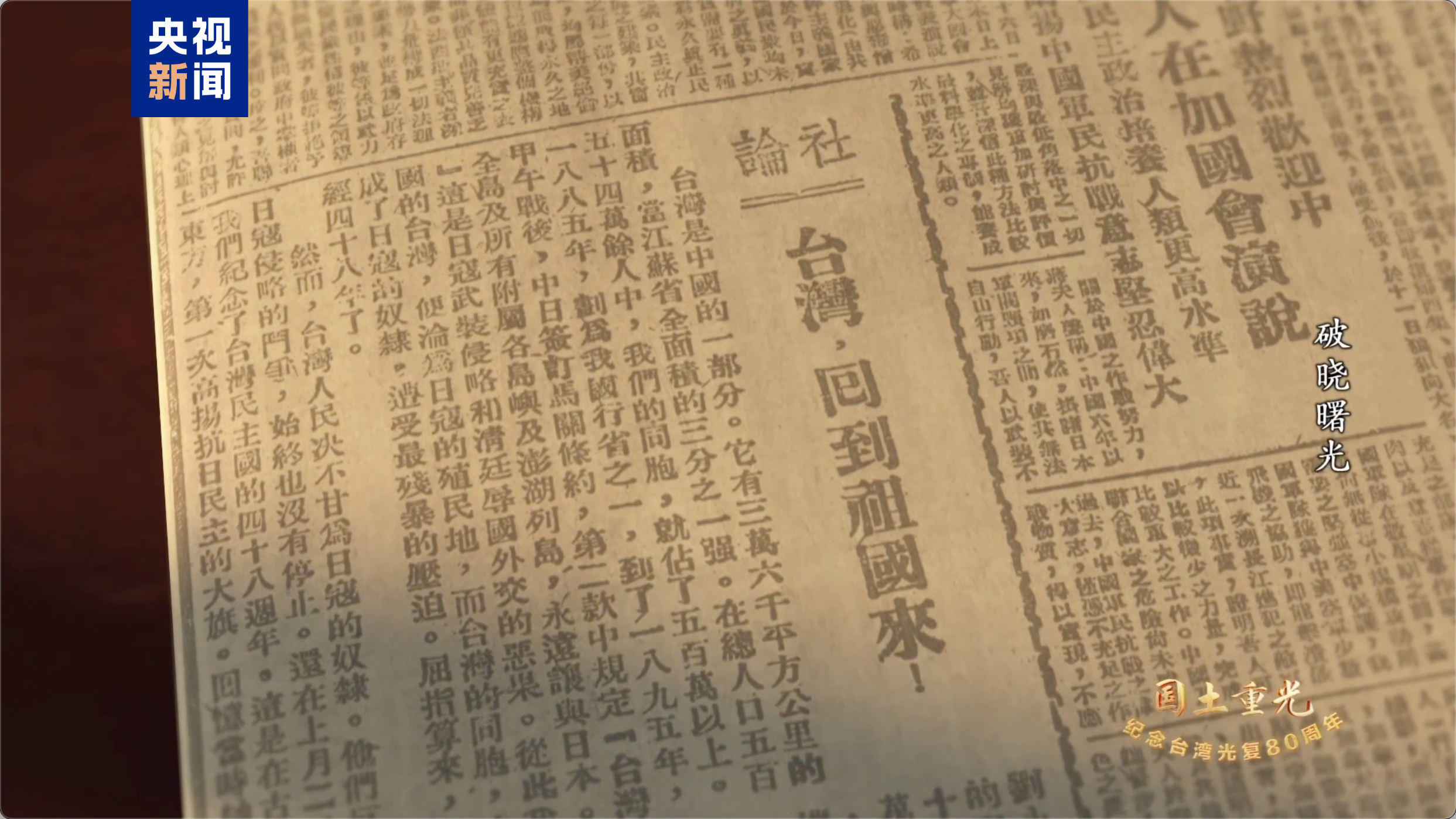 随着中国全民族抗战的胜利,台湾也将踏上归家的路途,它像离家许久的孩子,迫不及待要扑向母亲的怀抱!