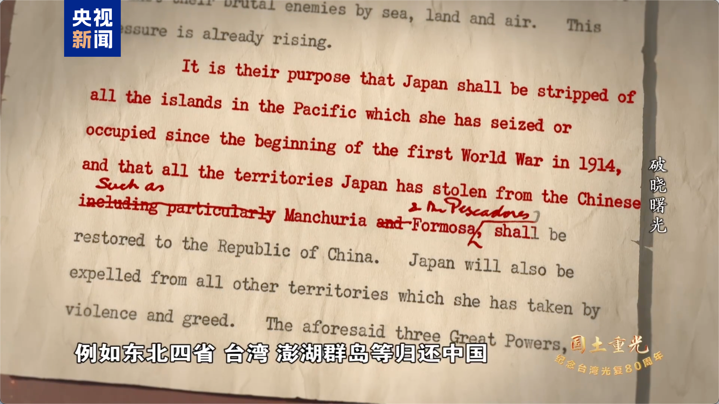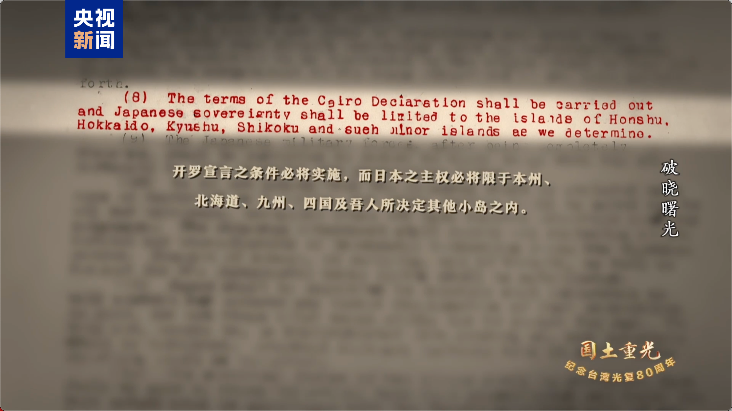 台湾回归中国,是二战胜利成果和战后国际秩序的重要组成部分。《开罗宣言》《波茨坦公告》等一系列具有国际法效力的文件,都确认了中国对台湾的主权,其历史和法理事实不容置疑。